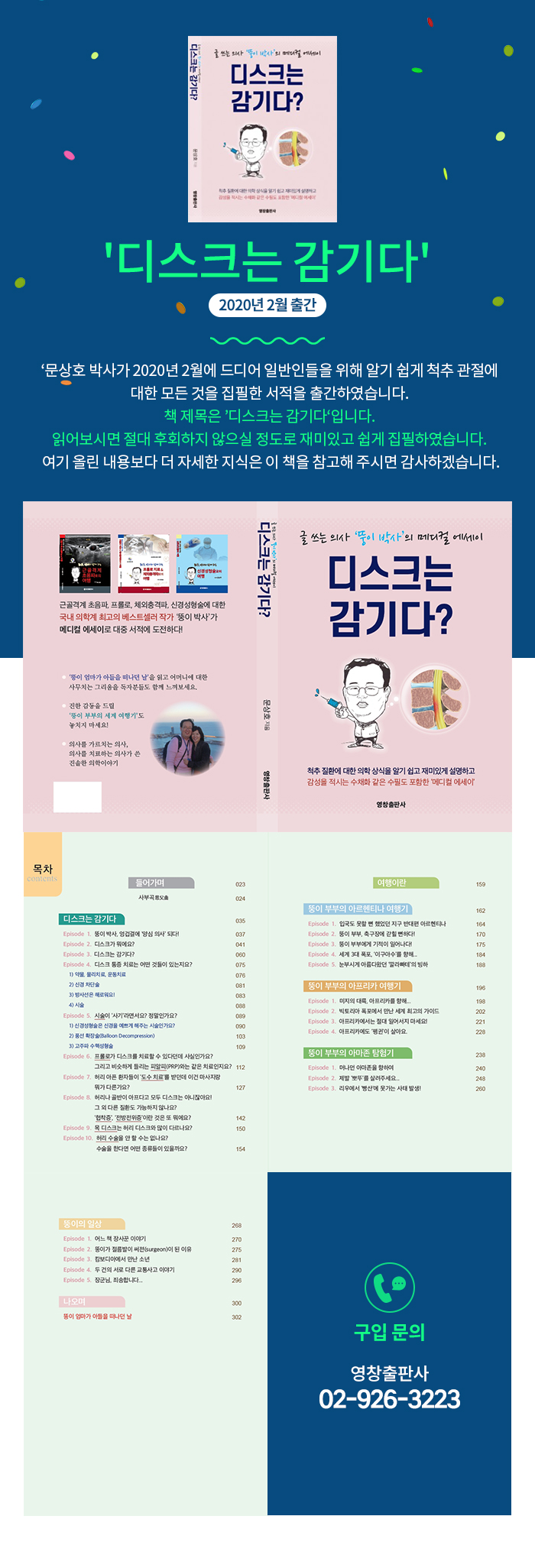 2020년 02월 출간도서 '디스크는 감기다?' 페이지 정보 작성자 관리자 댓글 0건 조회 1,231회 작성일 20-03-05 17:28 2020년 02월 출간도서 '디스크는 감기다' 목록 프린트 이전글서울문정형외과 소개 동영상 다음글 문상호 박사, 신경성형술 시술 기구 특허를 취득하다. 댓글목록 댓글목록 등록된 댓글이 없습니다.
